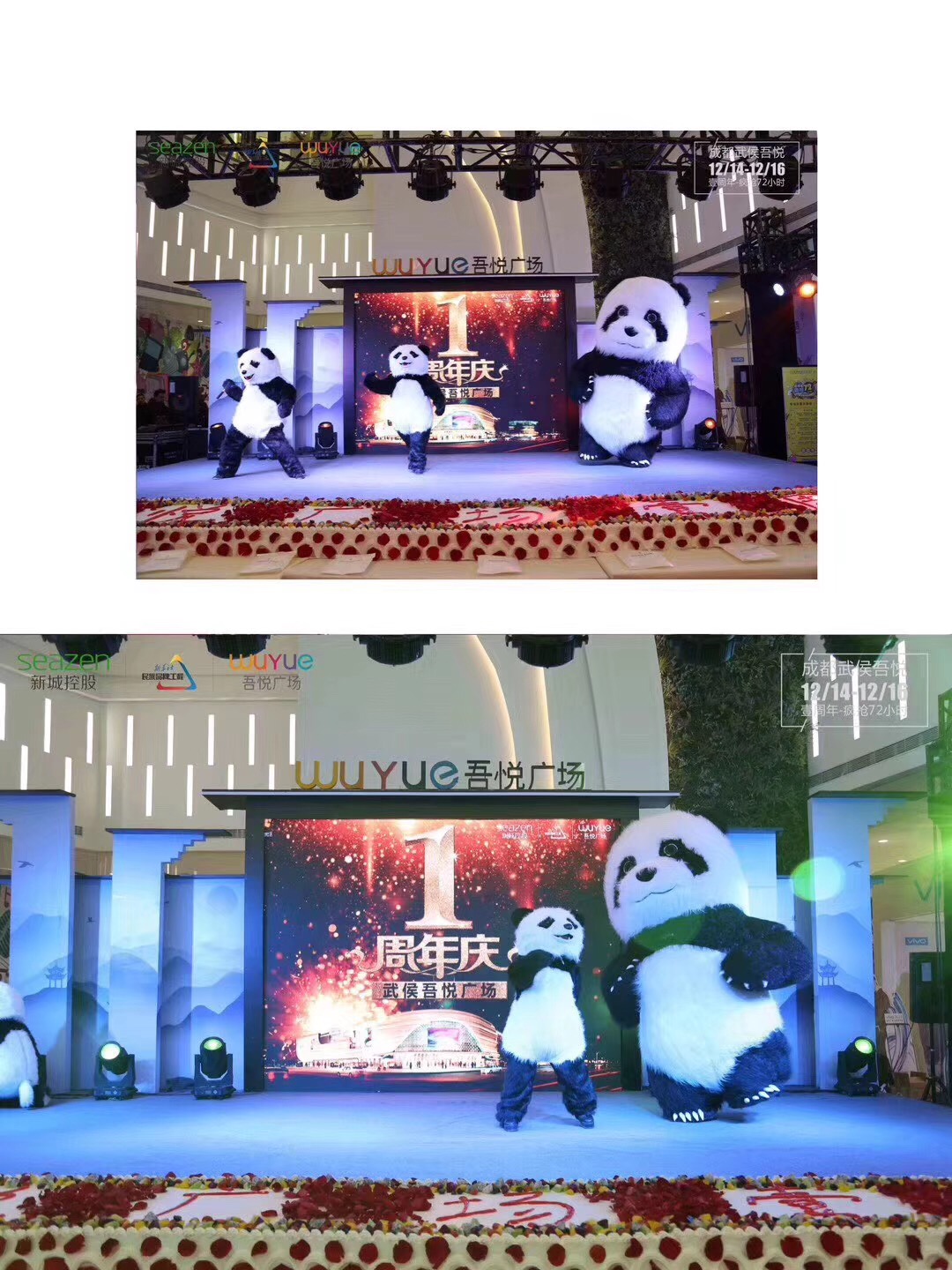 吾悅周年慶瘋搶72小時活動圓滿成功,現(xiàn)場設置了許多互動游戲,瘋狂搶超市,撈金球,十米生日蛋糕和精彩的狗狗表演,人氣爆棚,還有親子蛋糕diy,小丑巡游和可愛的熊貓巡游